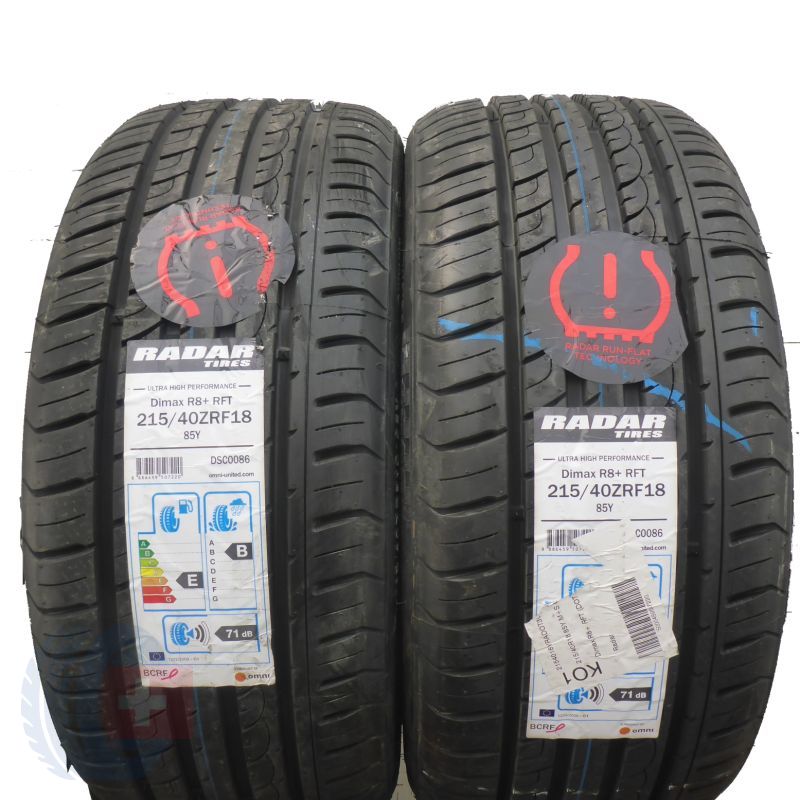 4 x RADAR 215/40 ZR18 85Y Dimax R8+ RFT M+S Lato 2018 JAK NOWE Nieużywane index: B2304Y285