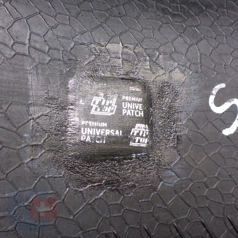 Jedna z opon jest profesjonalnie załatana.