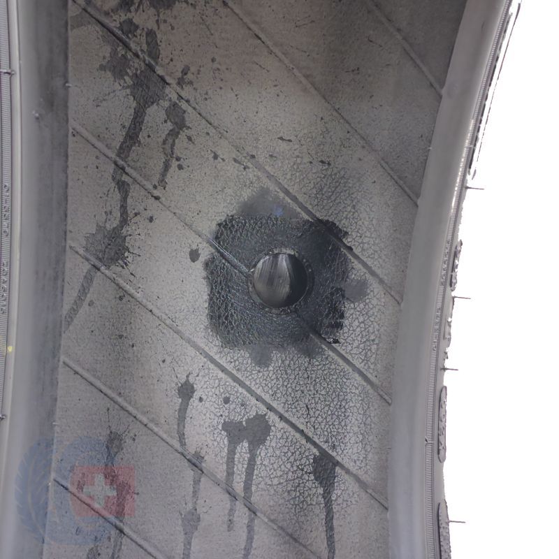 Jedna z opon jest profesjonalnie załatana.