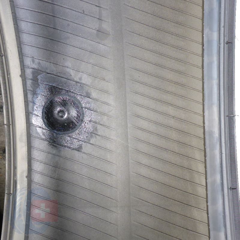 Jedna z opon jest profesjonalnie załatana.