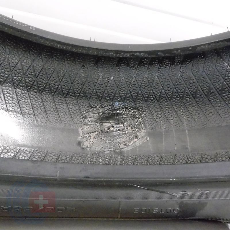 Jedna z opon jest profesjonalnie załatana.