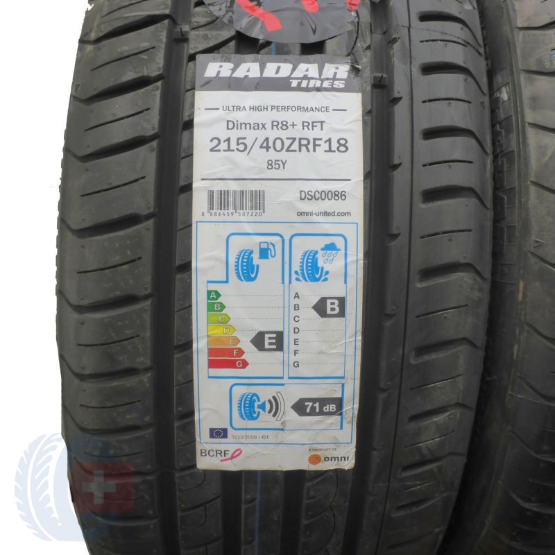 4 x RADAR 215/40 ZR18 85Y Dimax R8+ RFT M+S Lato 2018 JAK NOWE Nieużywane index: B2304Y285