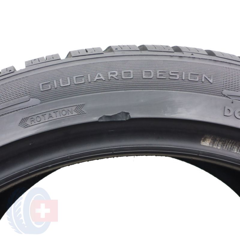 Jedna z opon ma uszkodzony rant ochronny.
